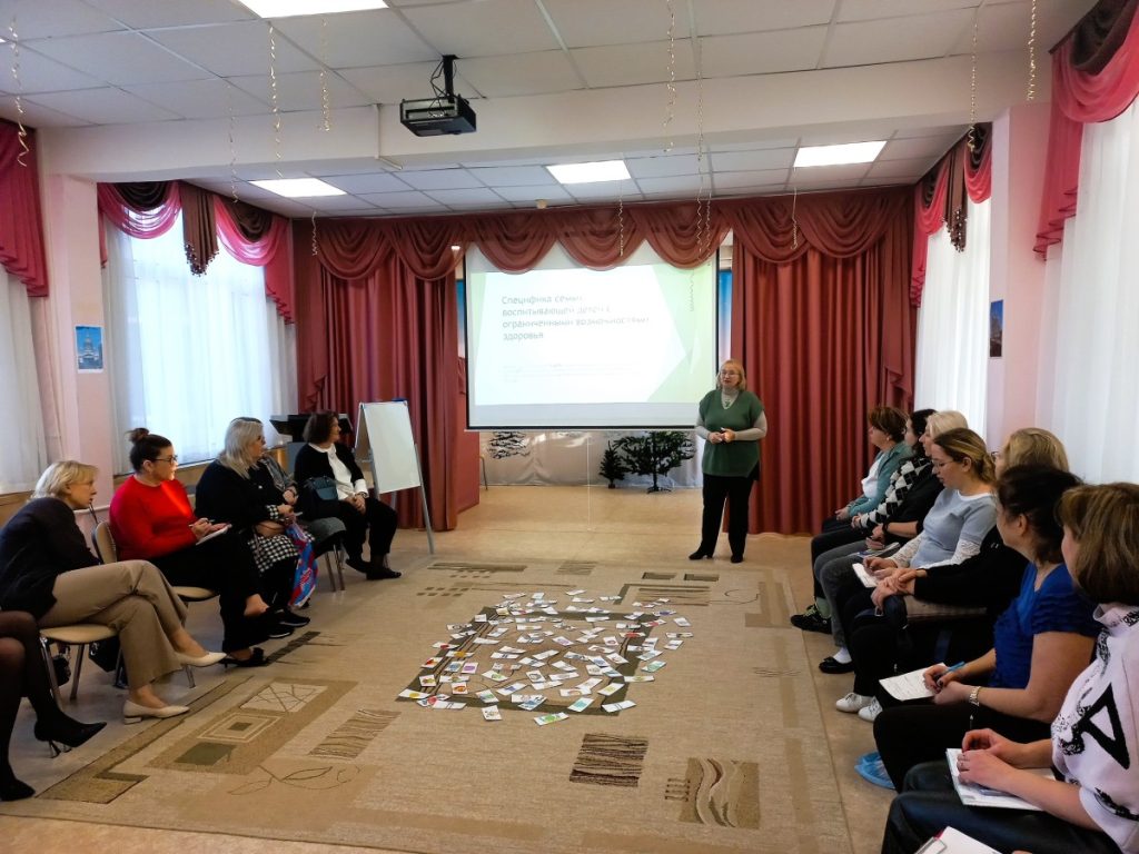 В рамках семинара состоялся психологический тренинг, позволяющий понять особенности родителей, воспитывающих детей с особыми образовательными потребностями. Тренинг провела Петш Елена Викторовна, педагог-психолог высшей квалификационной категории детского сада. Все участники мероприятия активно включились в обсуждение значимых вопросов сопровождения семей, воспитывающих детей с ОВЗ.