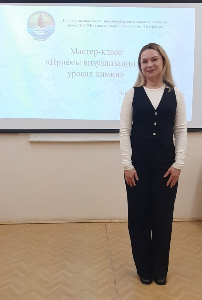 — Чернова Анна Владимировна, школа №219, тема «Приёмы визуализации на уроках химии», продемонстрировала педагогам такие приёмы;